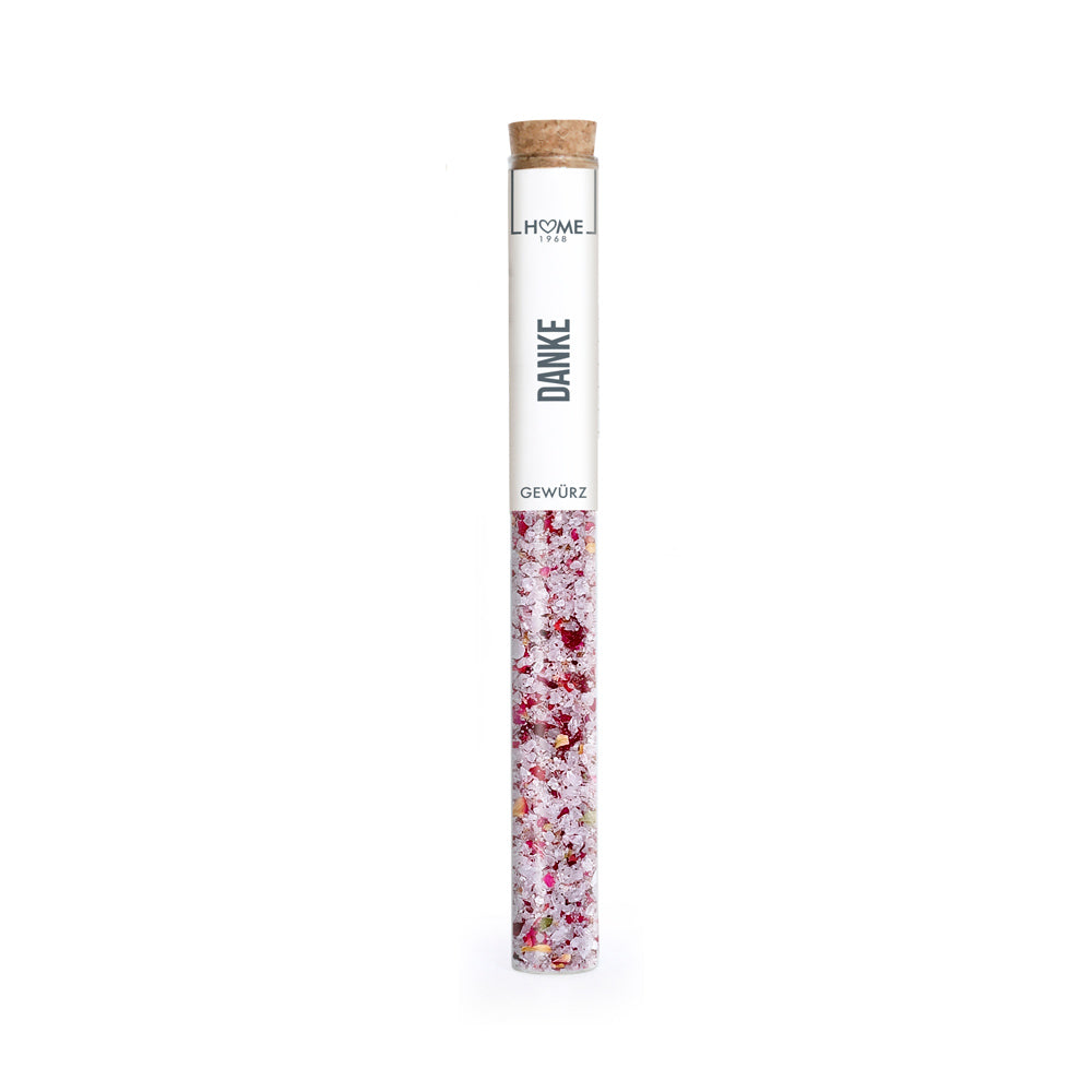 Steinsalz 70%, Meersalz 23,5%, Rosenblüten 5%, rosa Pfeffer.