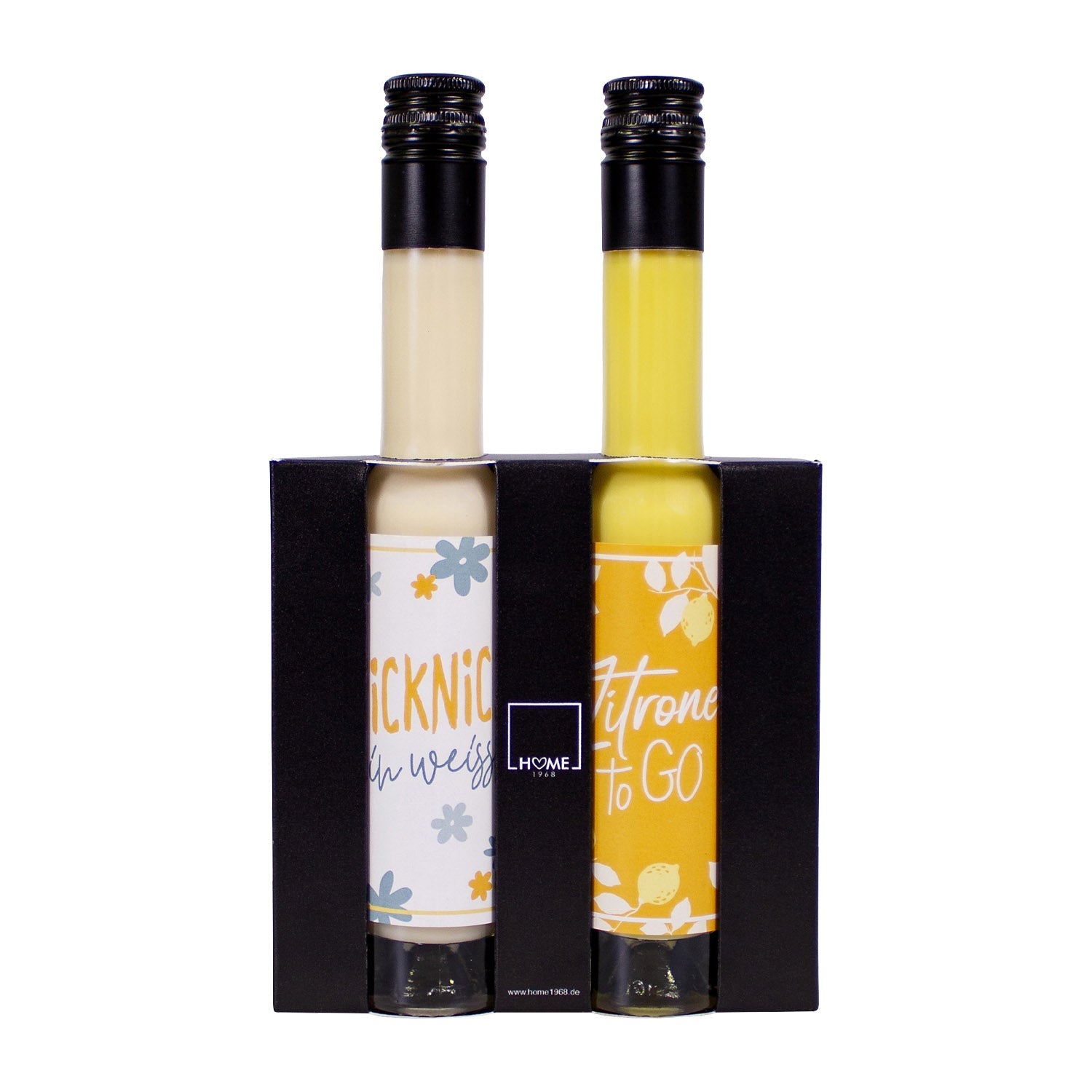 Inhalt: je 0,1l: Picknick in weiss, Ananas-Kokos Sahnelikör, Zitrone to go, Limoncello Sahnelikör