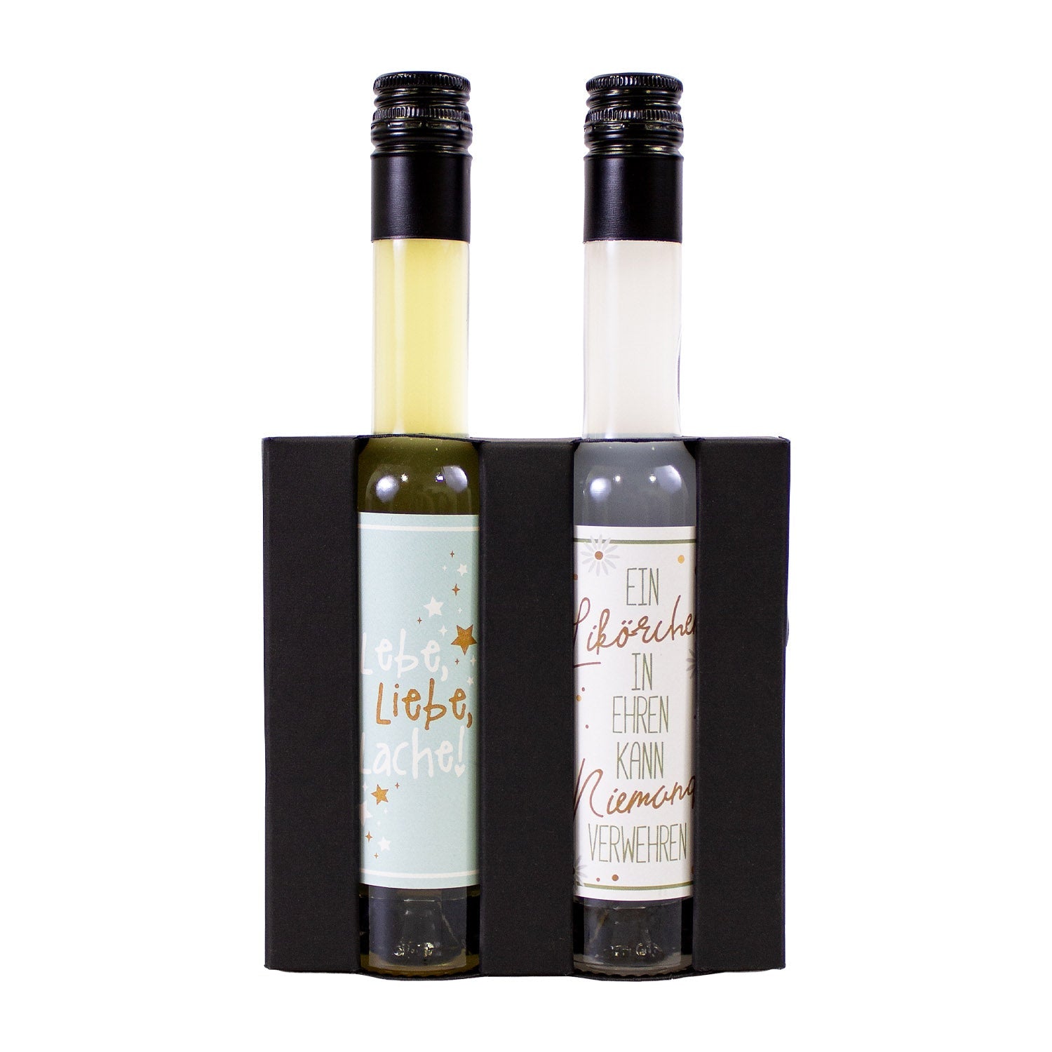 Inhalt: je 0,1l: Lebe, liebe, lache, Wildorangen Likör, Ein Likörchen in Ehren..., Litschi Likör