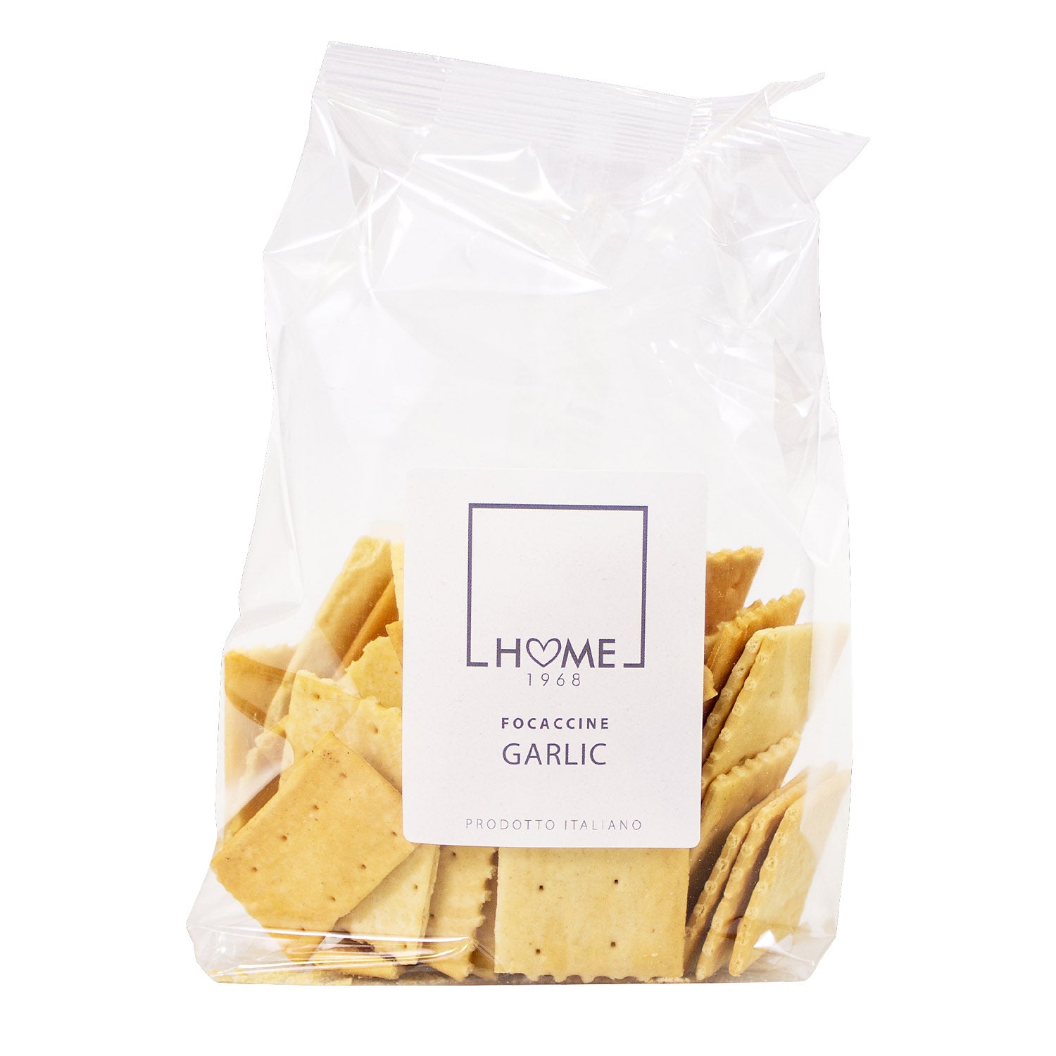 Weichweizenmehl, Olivenöl, Sonnenblumenöl, Salz, gemälztes Weizenmehl, Hefe, Knoblauch 0,5%, natürliche Aromen.