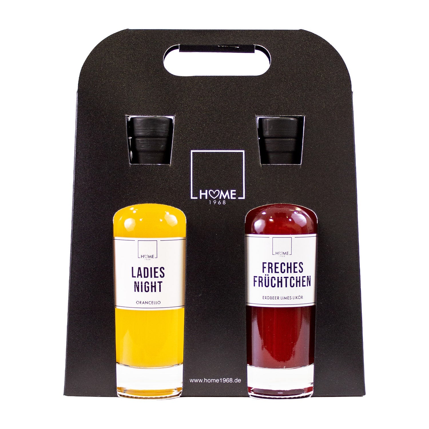 Inhalt: je 0,2l Ladies Night, Orancello Likör, Freches Früchtchen, Erdbeer Limes Likör