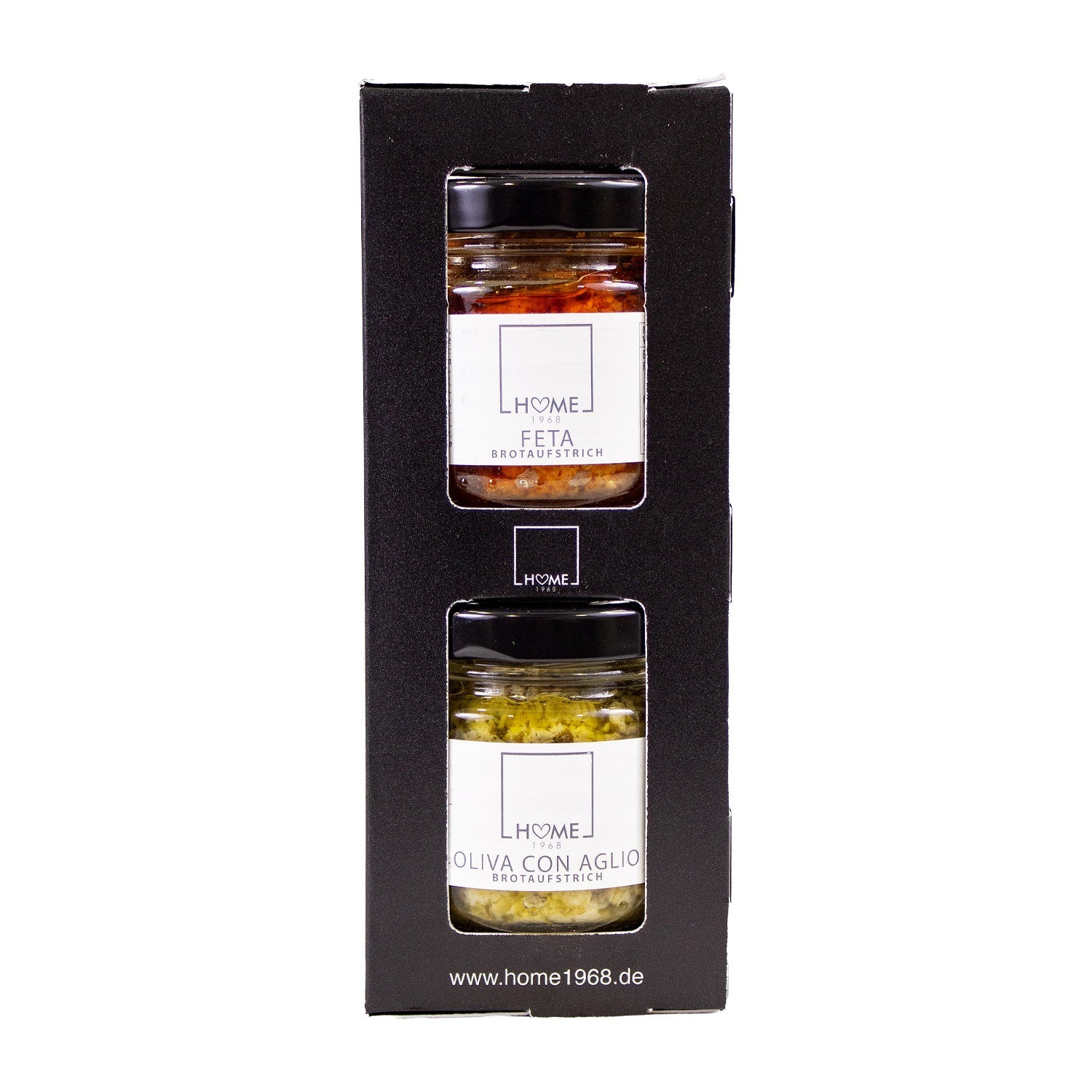 Inhalt: Brotaufstrich Feta 90g, Brotaufstrich Oliva con Aglio 90g