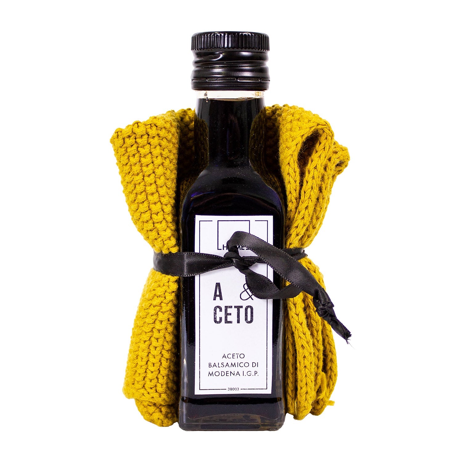 Inhalt: A & CETO, Aceto Balsamico dunkel 125ml, Spüllappen gelb