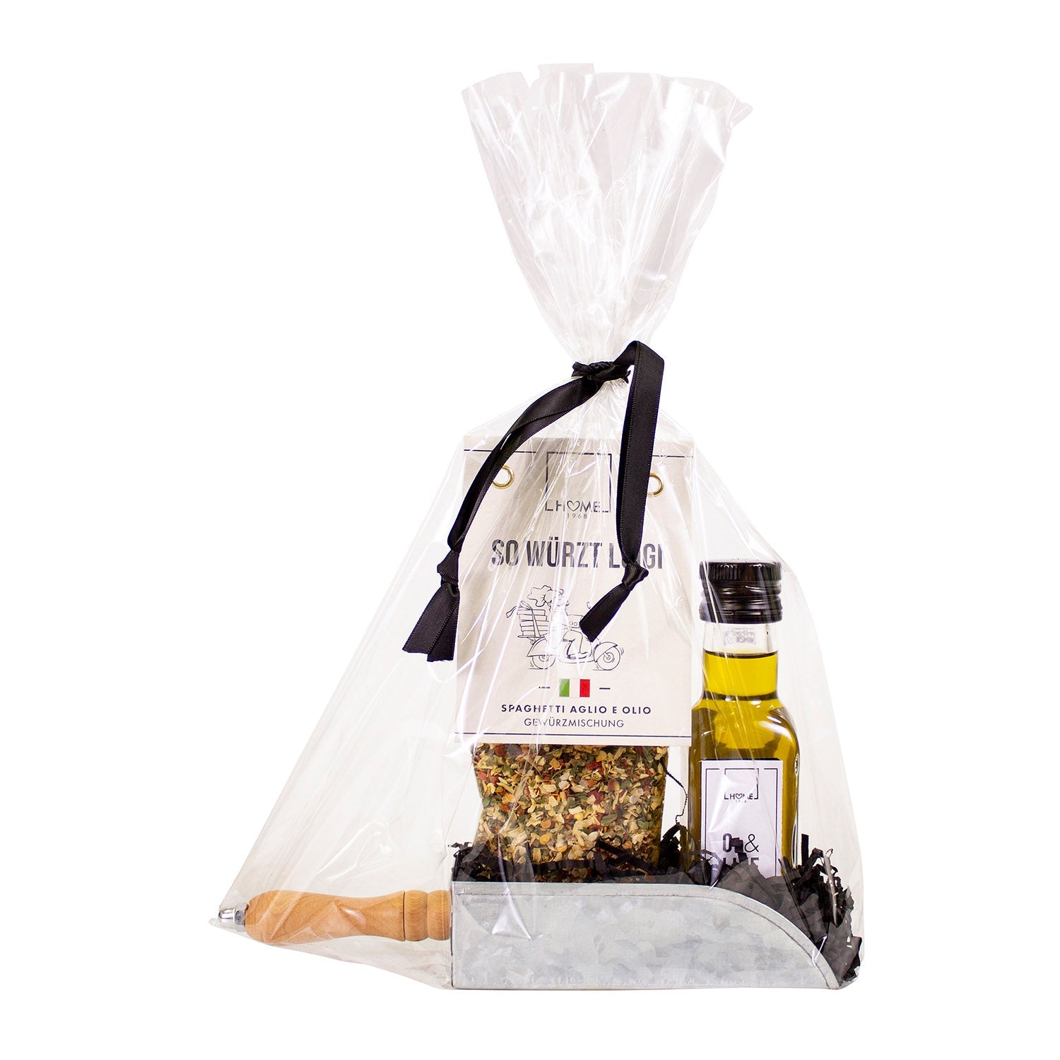 Inhalt: So würzt Luigi, Spaghetti aglio e olio Gewürzmischung 70g, O & Live, Olivenöl aus Spanien 125ml